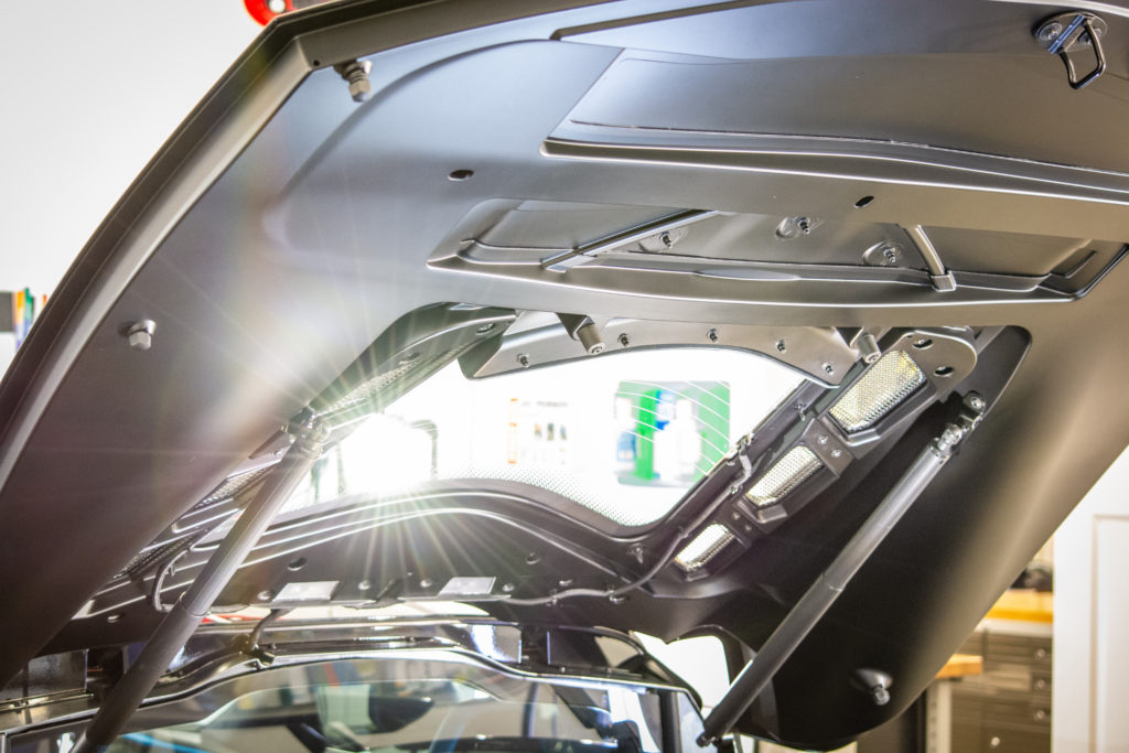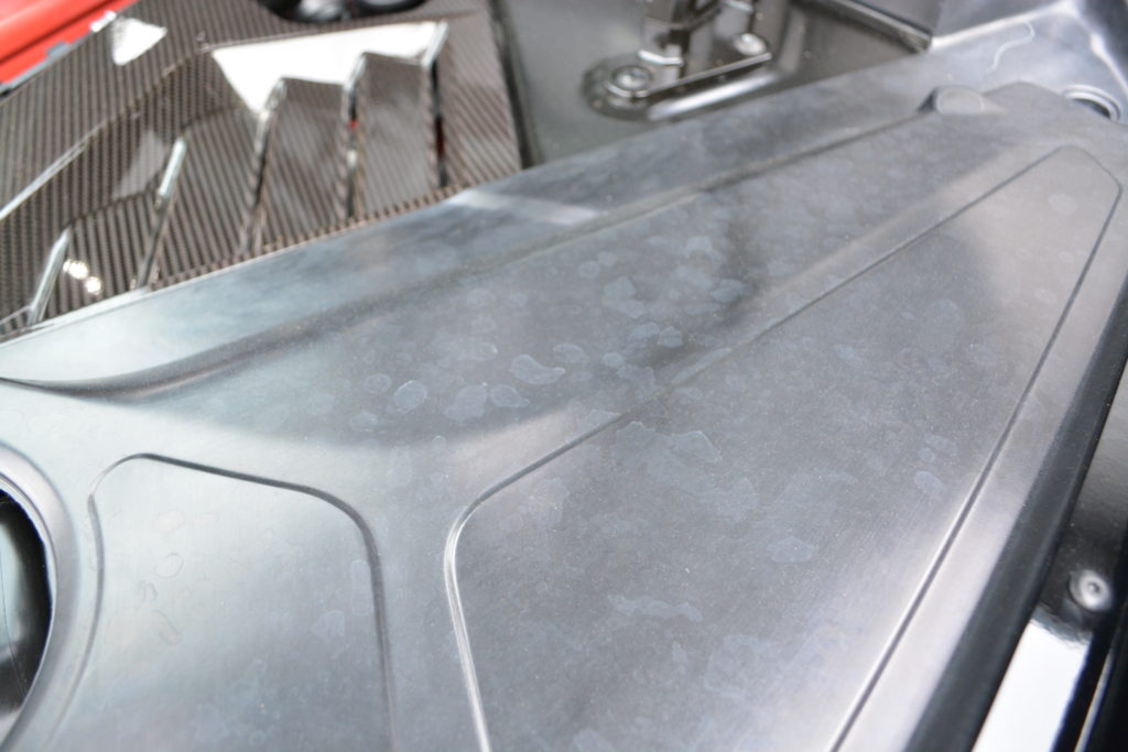Shout out to TCT Wraps who did a wonderful job on the nearly full-body, custom XPEL Paint Protection Film (PPF) wrap and window tint install. They were able to coordinate seamlessly with our schedule to help expedite the project and their workmanship is impeccable.The rear bumper took nearly an entire 8-hour shift to fully correct and polish out due to the extensive abrasive damage around every panel edge, which are inherently problematic to safely polish on.This is cool. Intricate, hand painted details on the engine cover.All plastic bits and door jambs were ceramic coated to help protect against future water spotting issues and make cleaning these complex areas a breeze.We even coated the tires with a durable finish that won’t fade in the rain or wash off for several months.